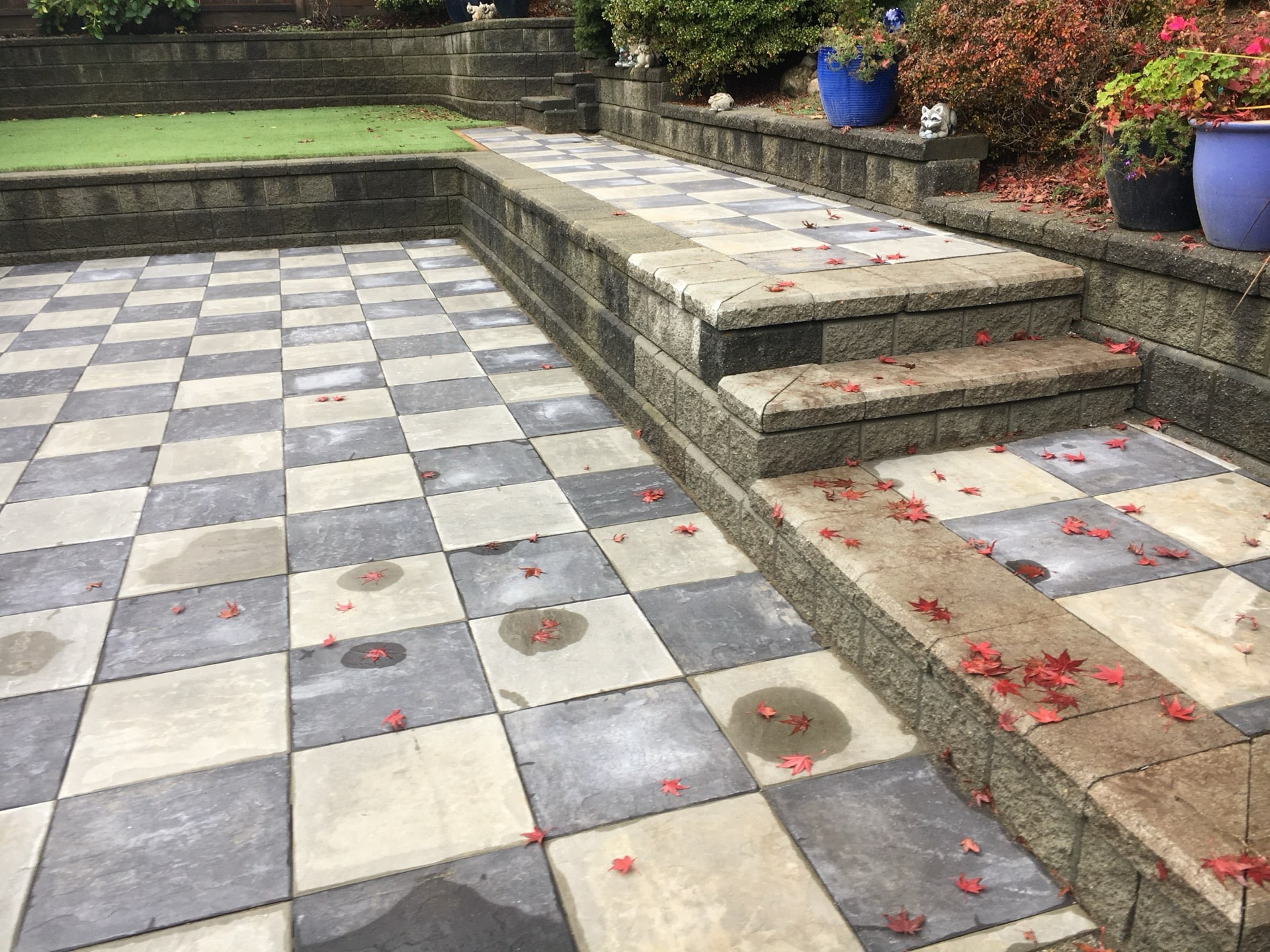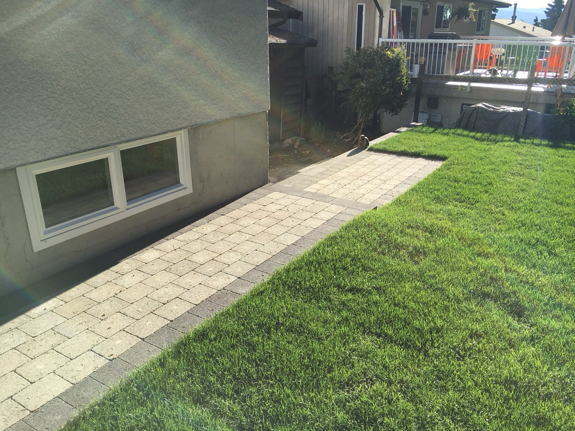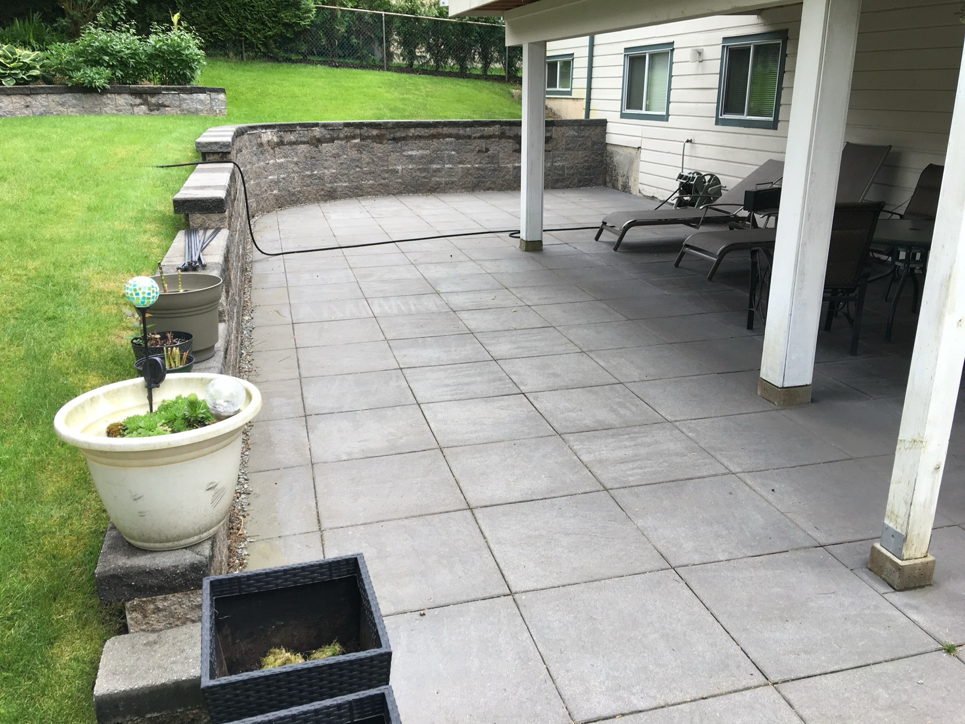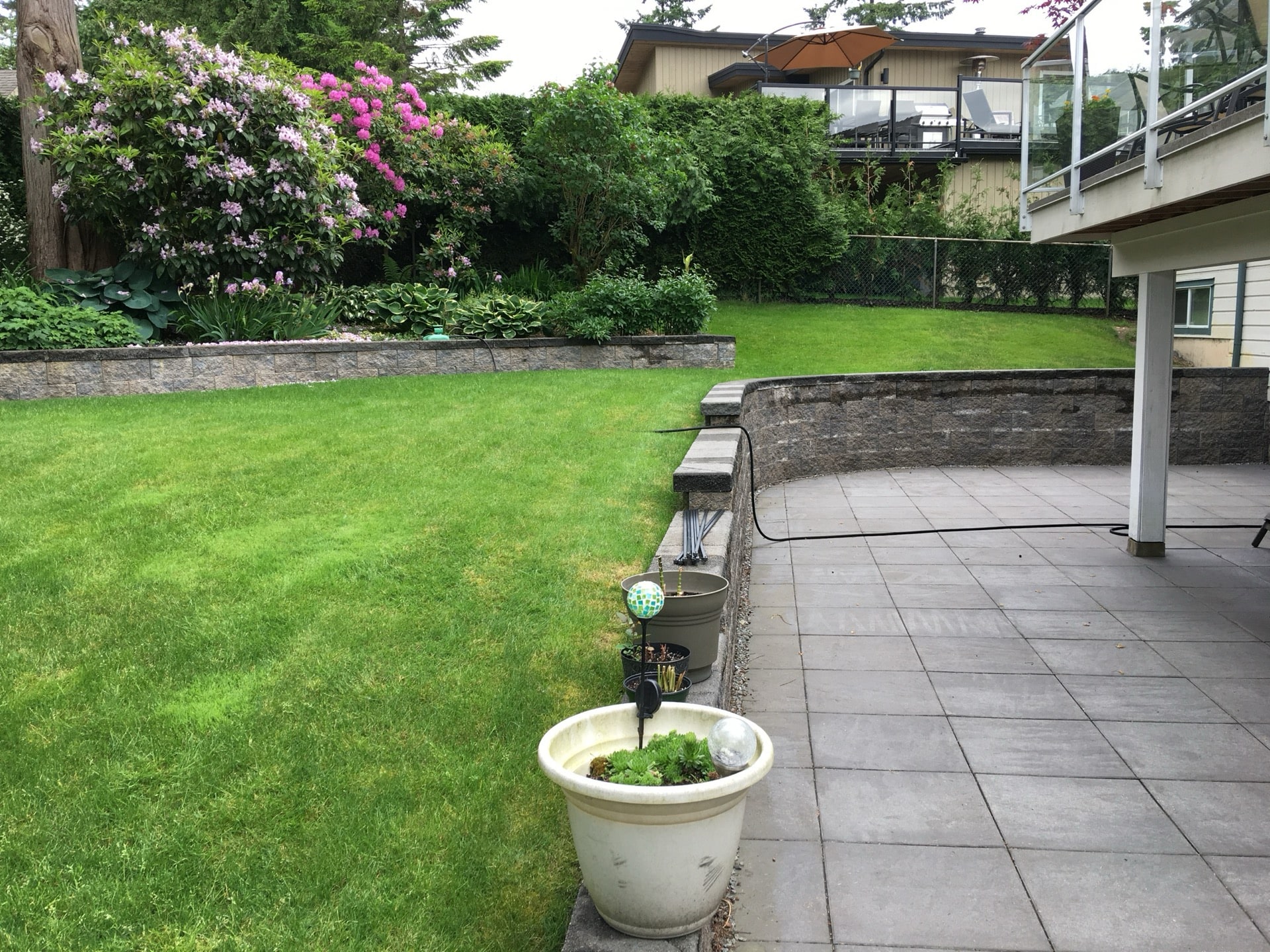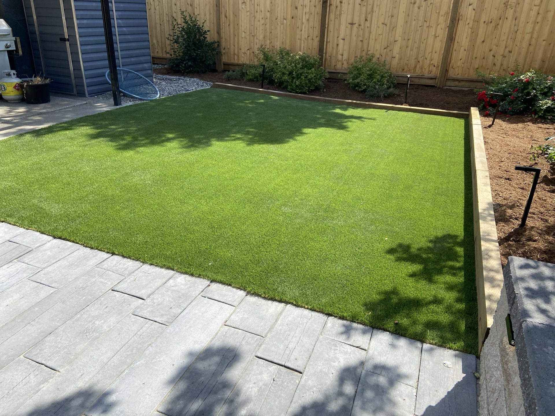In today's Eco friendly environment many homeowners are moving away from high maintenance lawns and installing artificial grass, paving, and/or plantings.