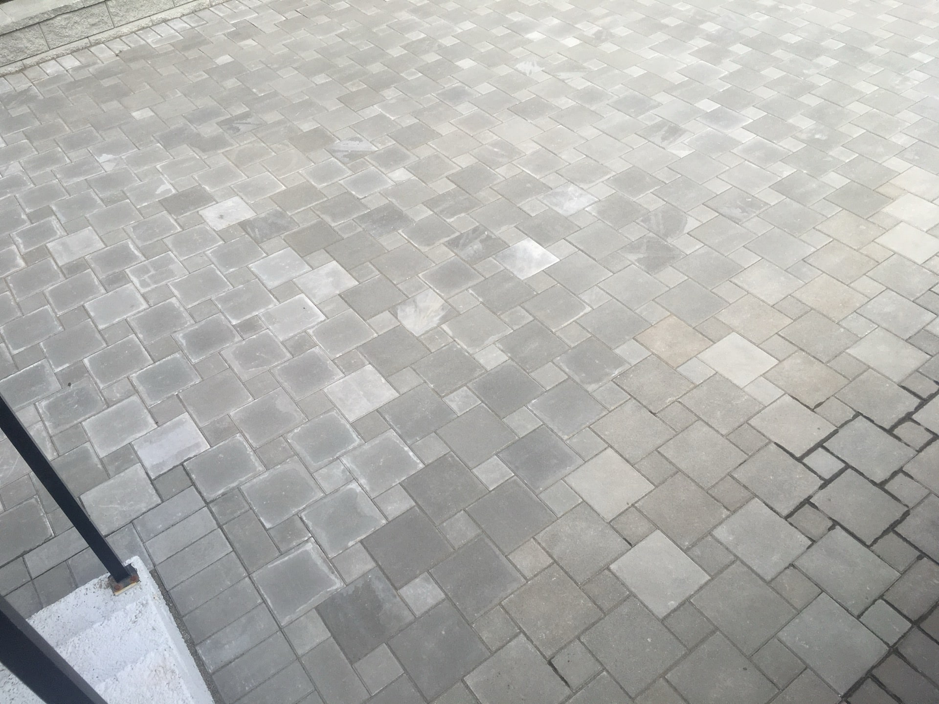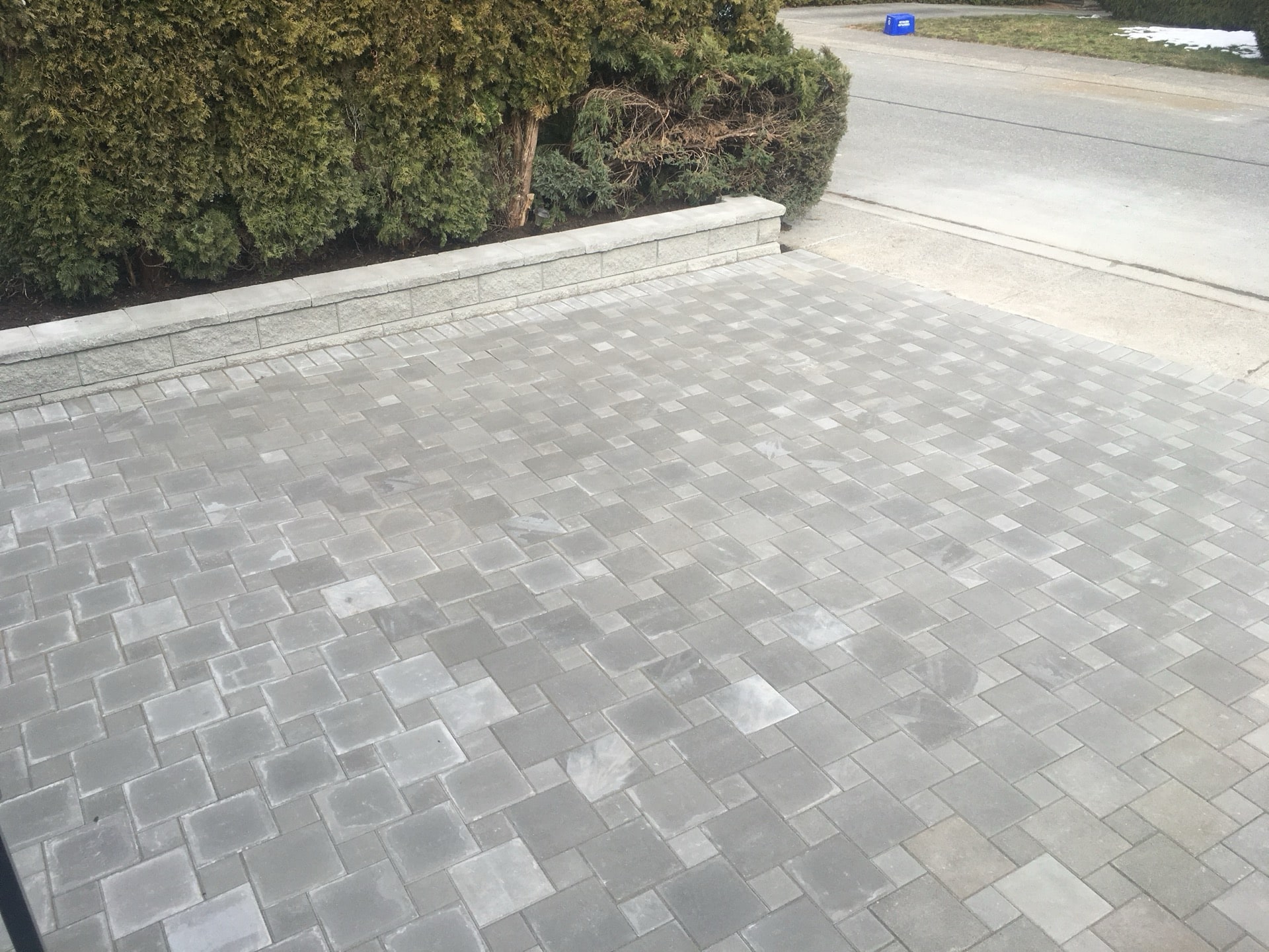 Through the manufacturing process paving slabs are stronger than poured concrete sincethere is a smaller water to cement ratio and they are hydra pressed which reduces the air content in each slab. They are also know as “flexible pavement”, meaning they will move with freezing and thawing temperatures.
