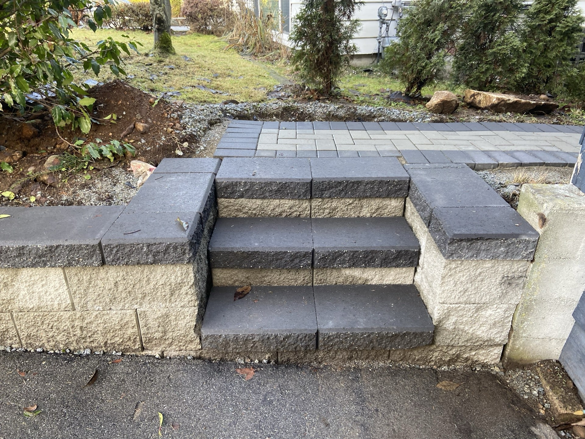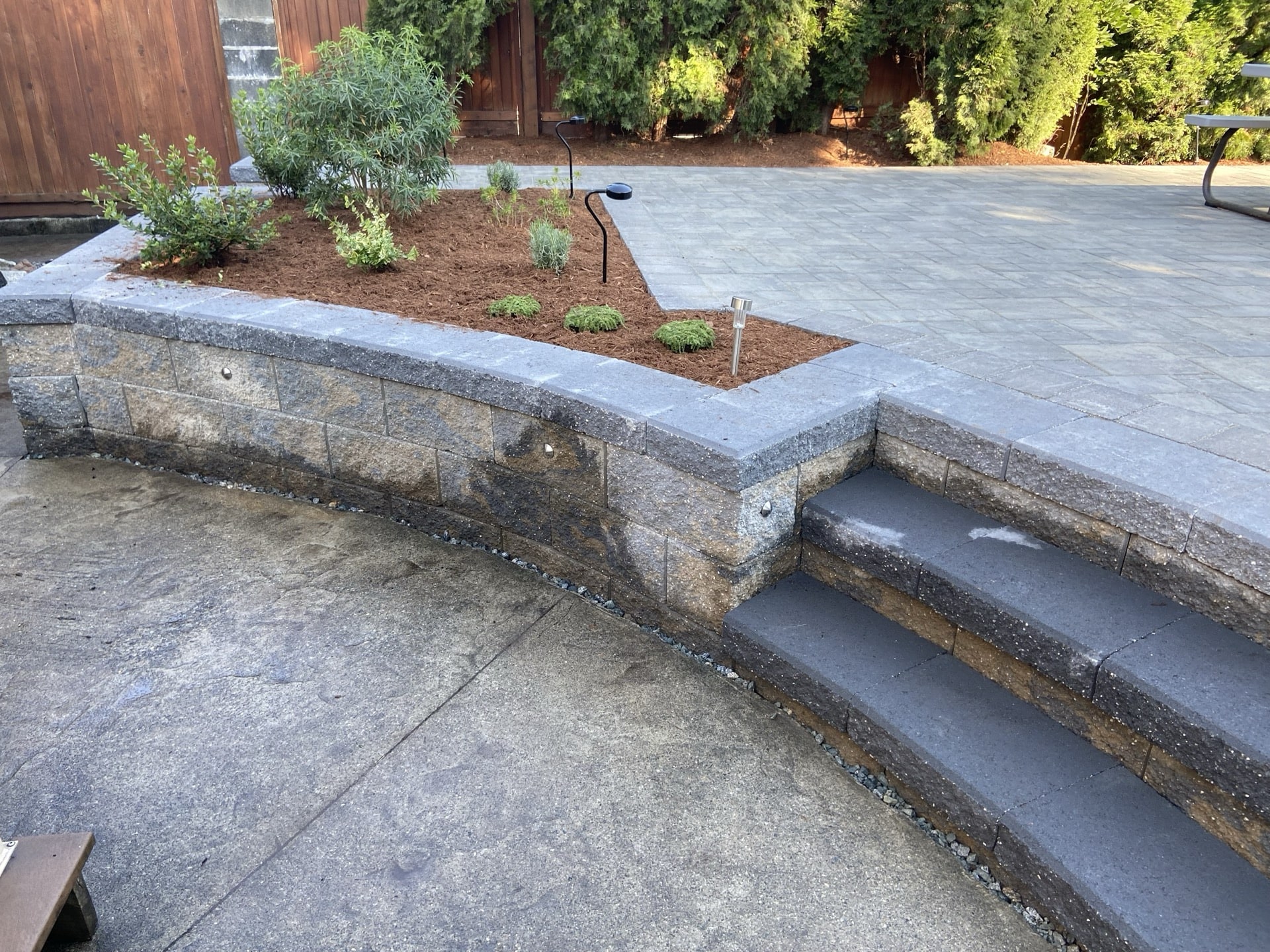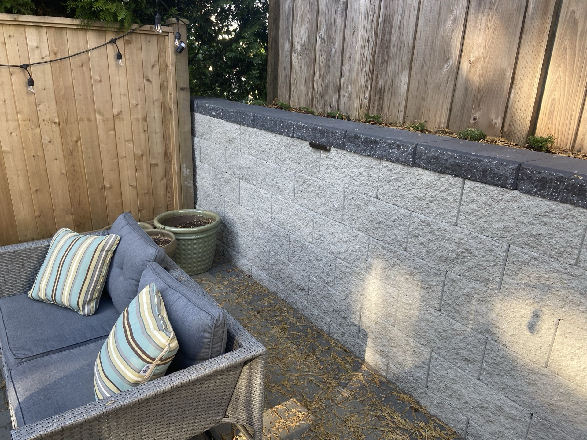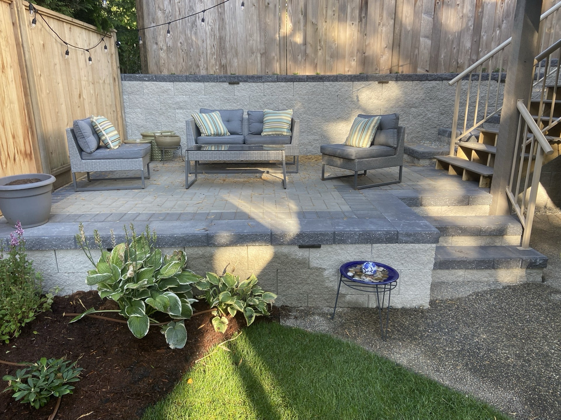 Thanks to being a preferred contractor with Home Depot this lovely couple found us to renovate their entire landscape. We installed a new property line retaining wall, large back paving stone patio with a path way after removing and old tired deck.