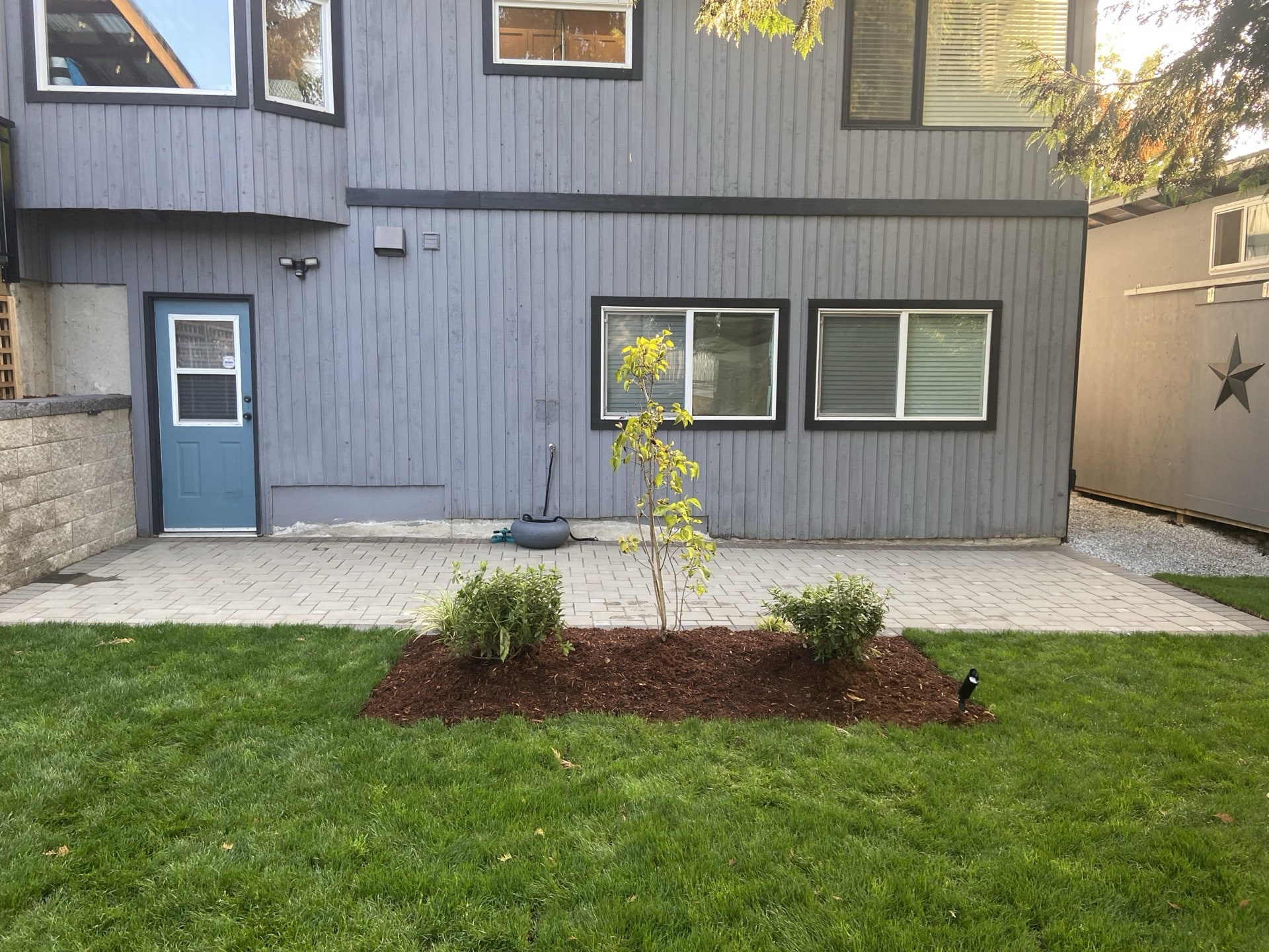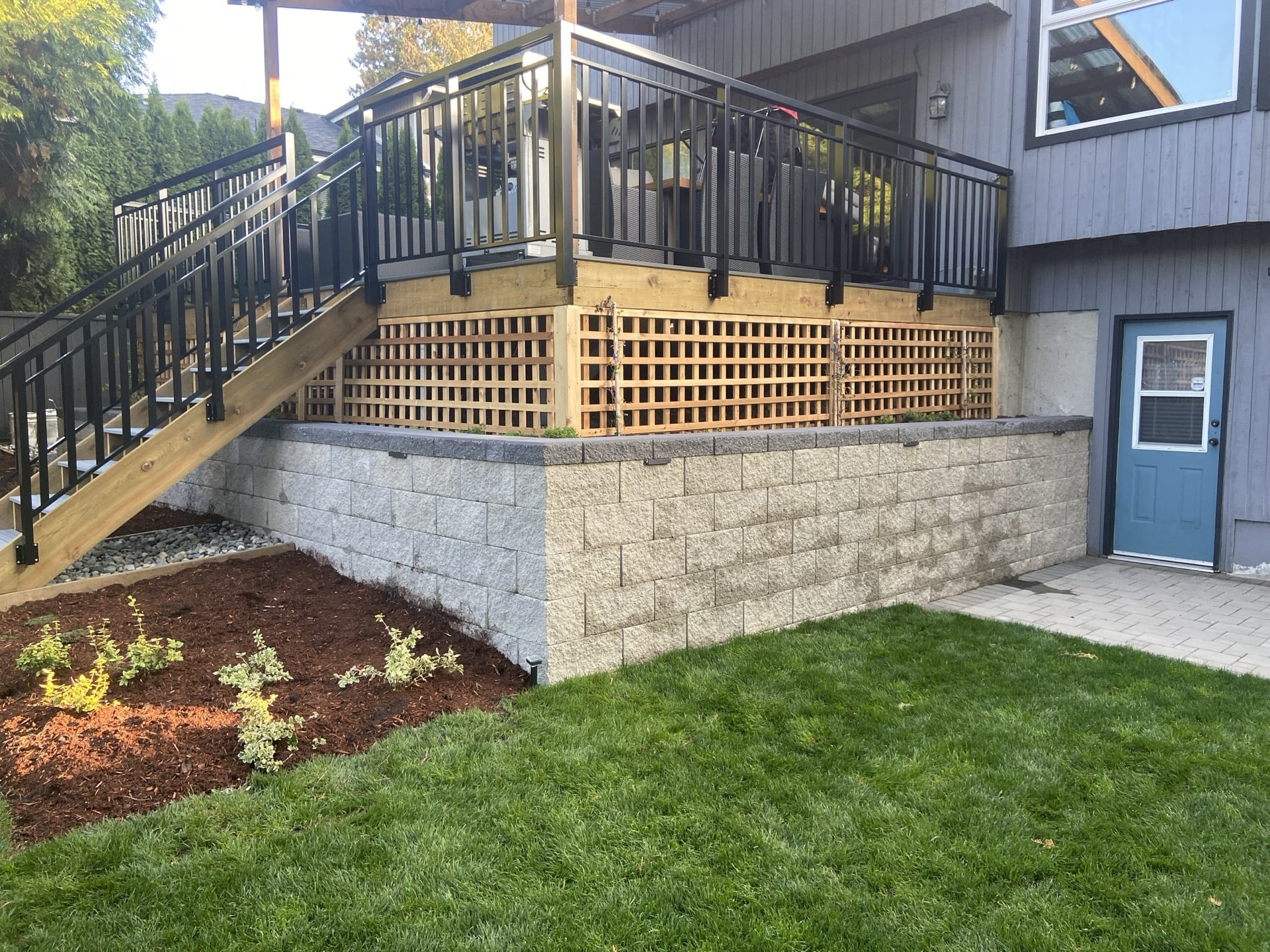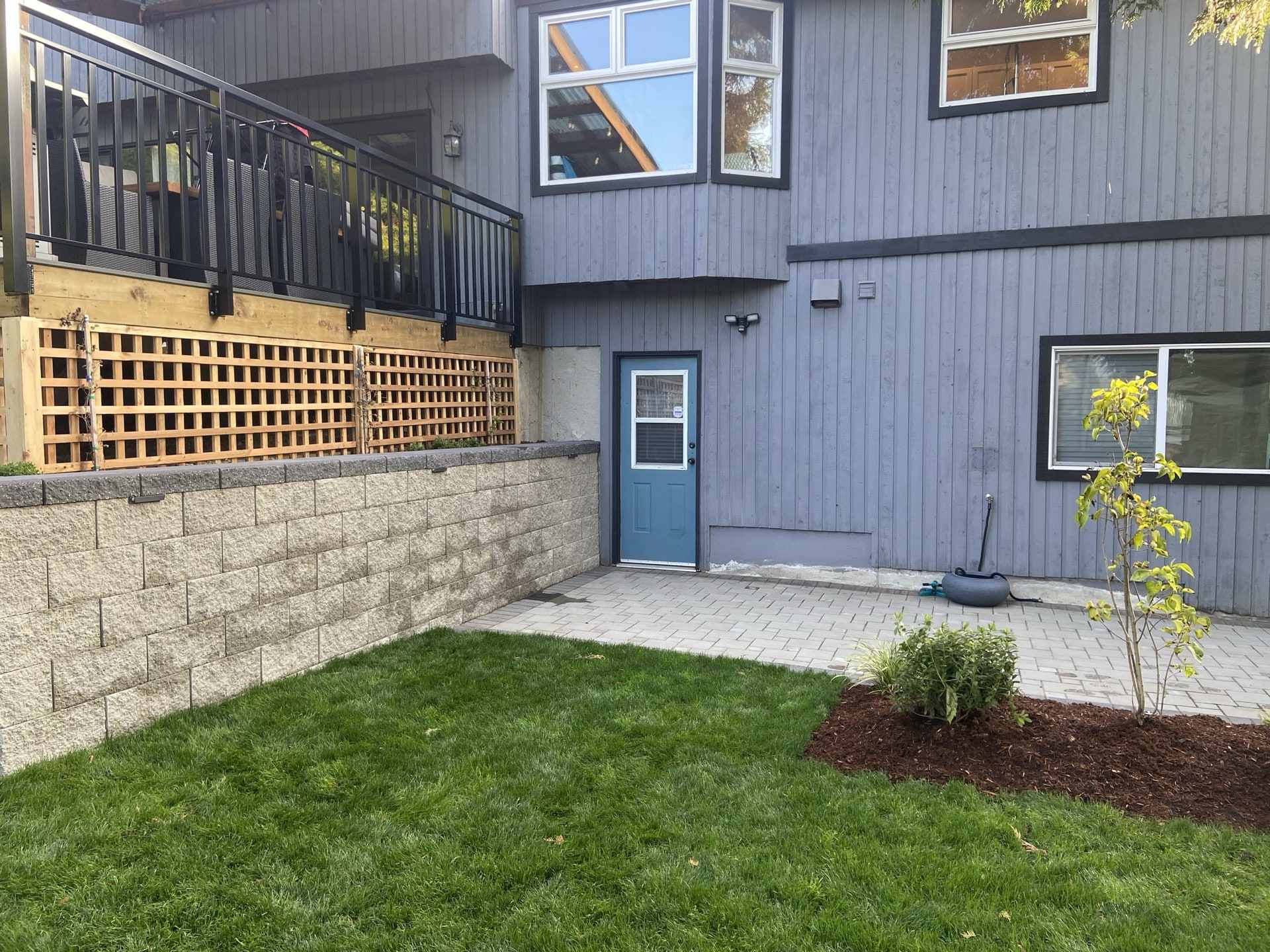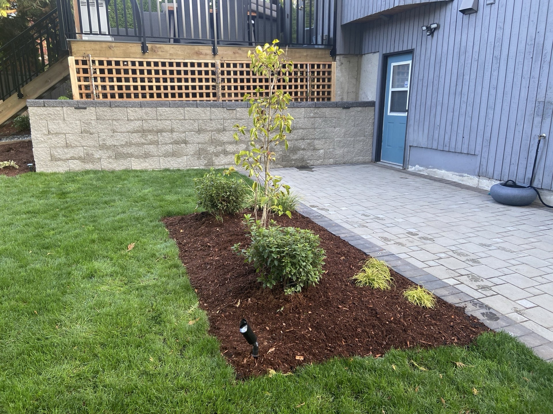Thanks to being a preferred contractor with Home Depot this lovely couple found us to renovate their entire landscape. We installed a new property line retaining wall, large back paving stone patio with a path way after removing and old tired deck.