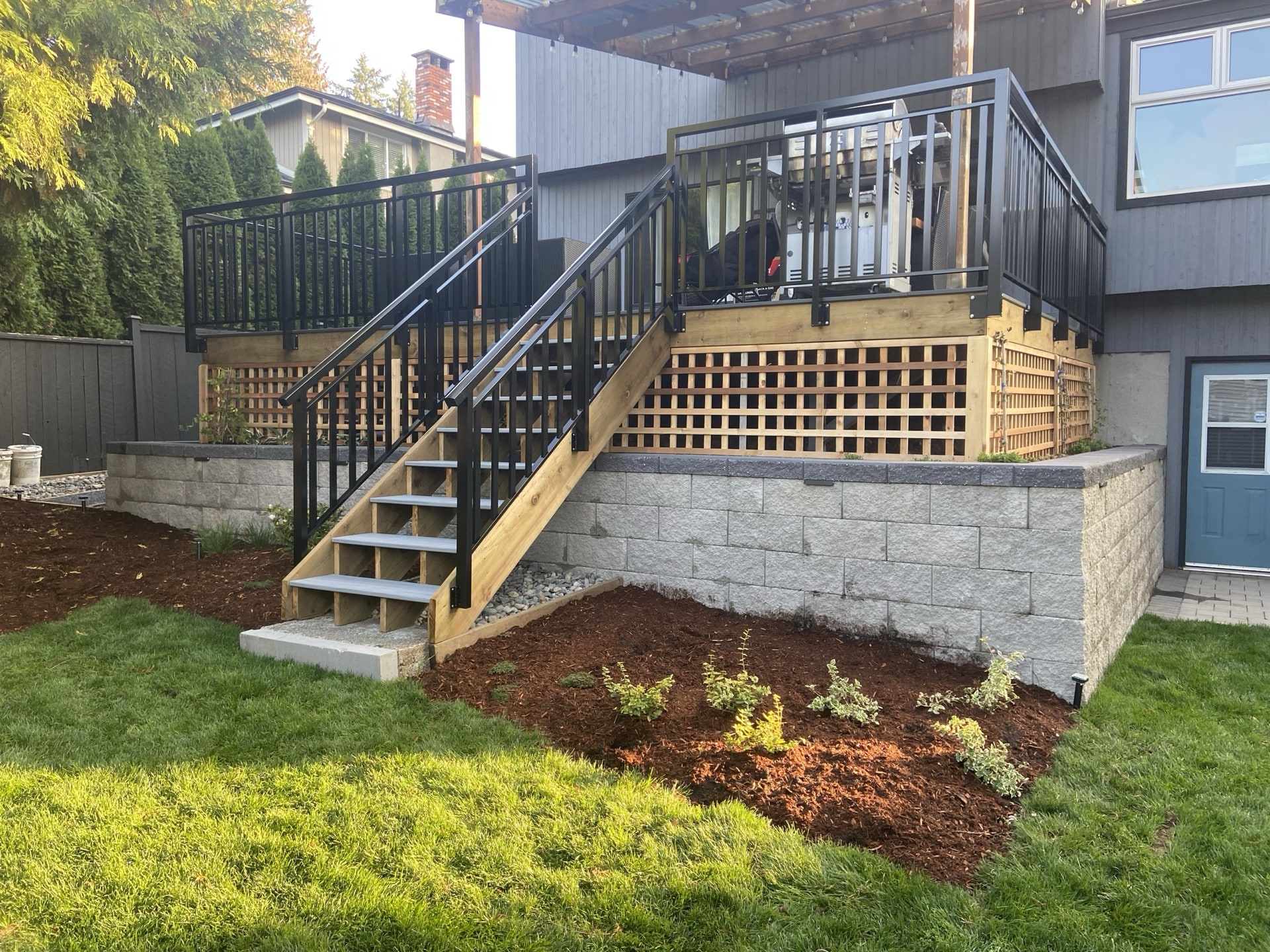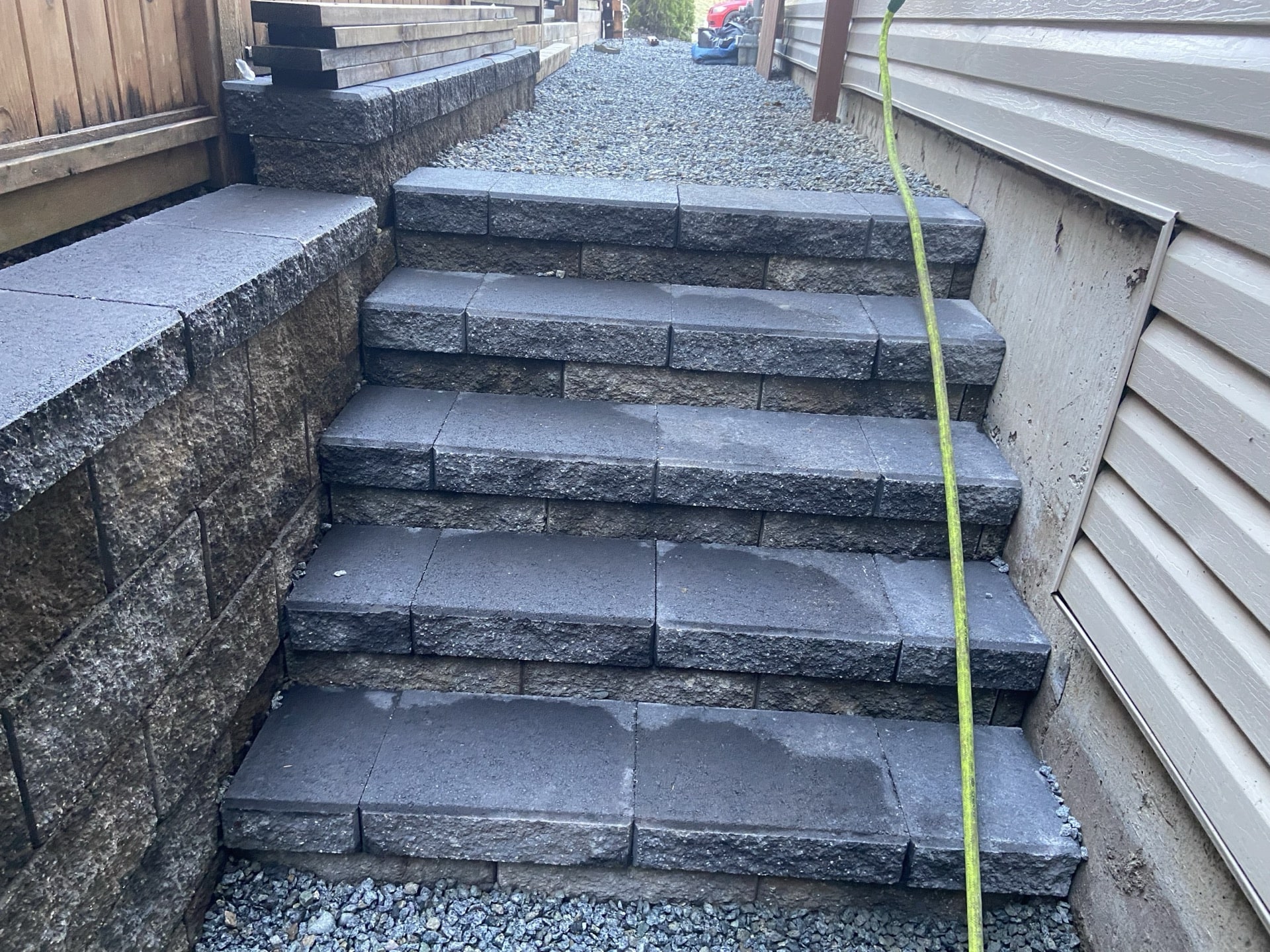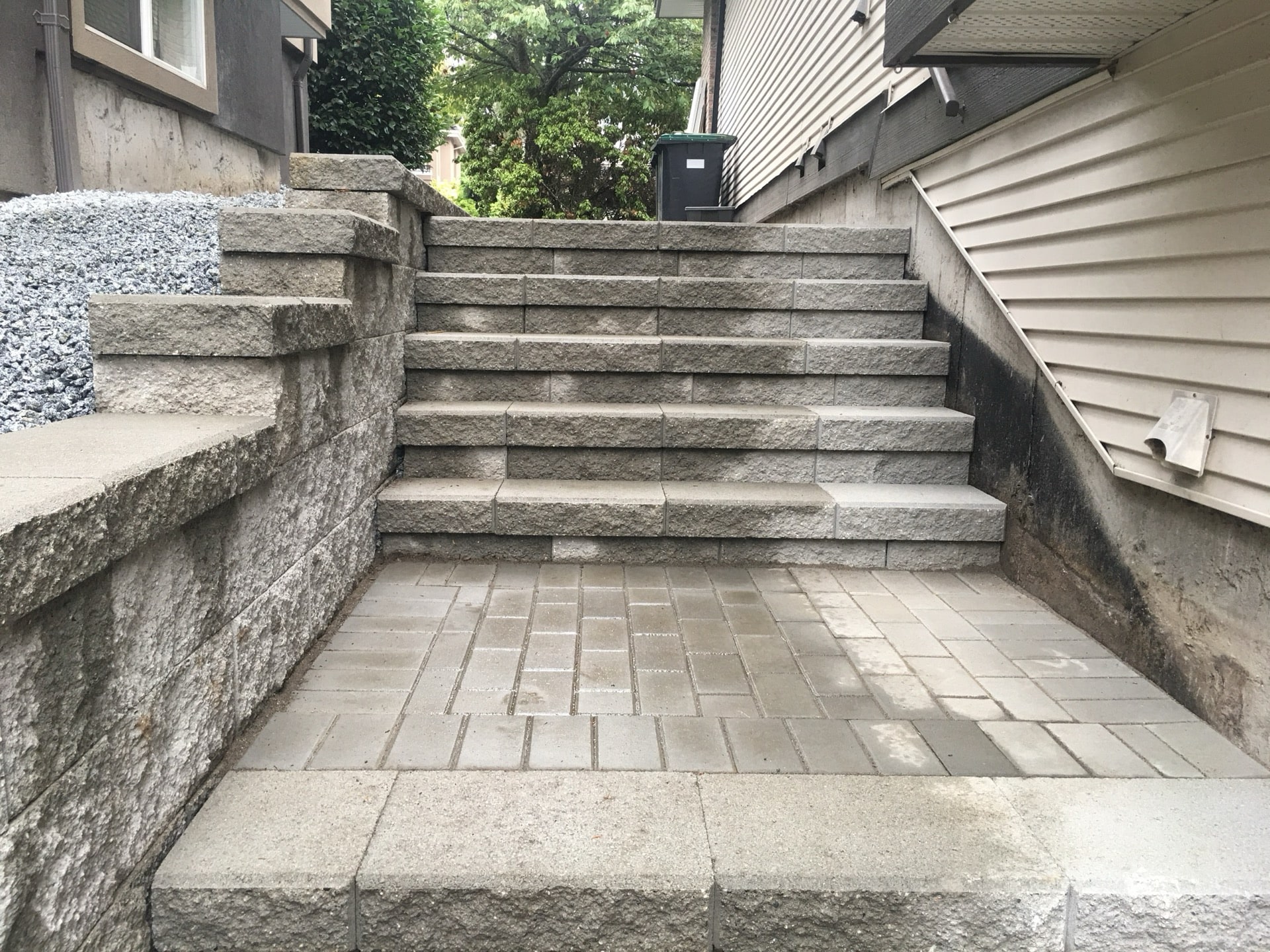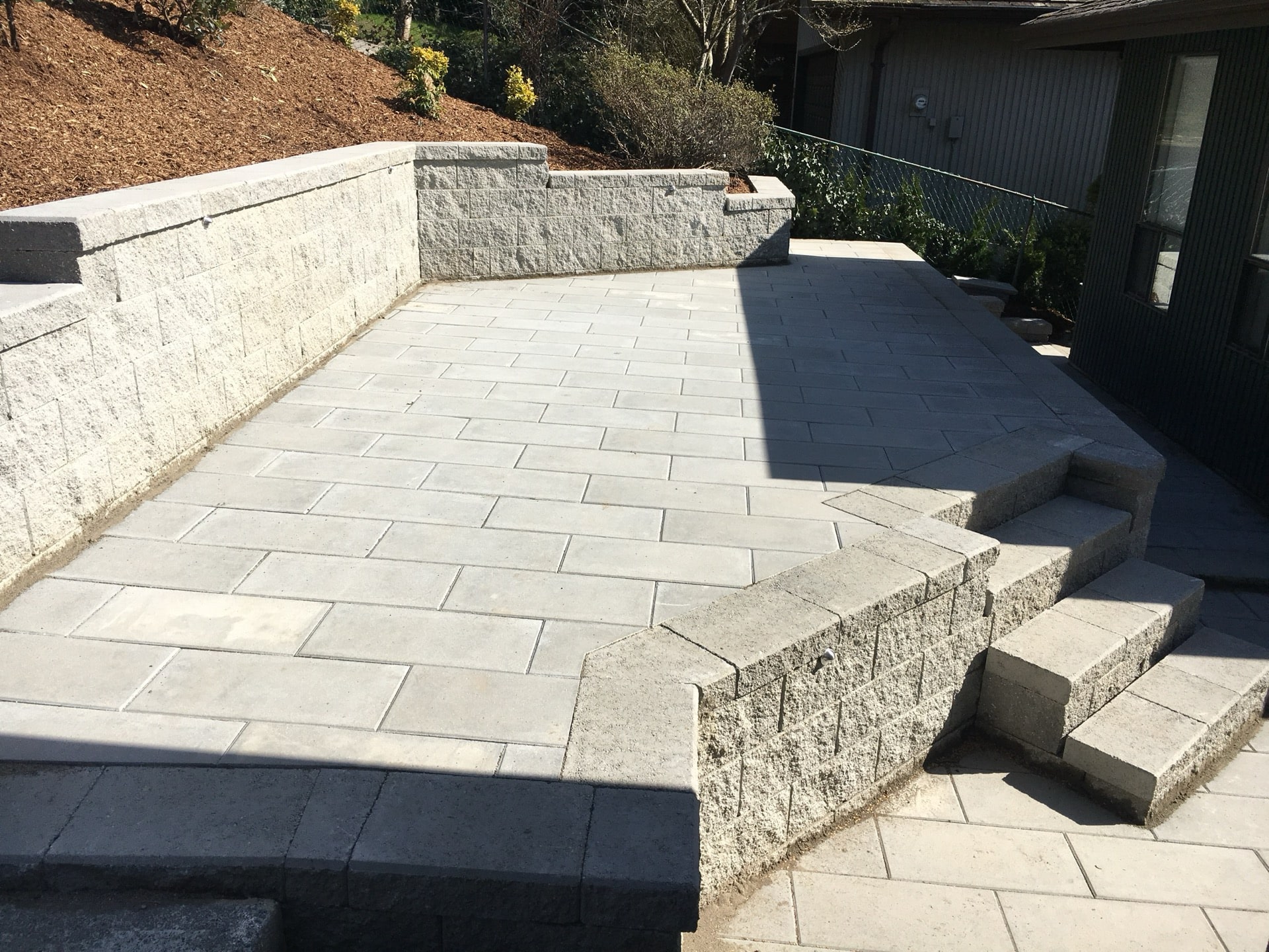 Thanks to being a preferred contractor with Home Depot this lovely couple found us to renovate their entire landscape. We installed a new property line retaining wall, large back paving stone patio with a path way after removing and old tired deck.