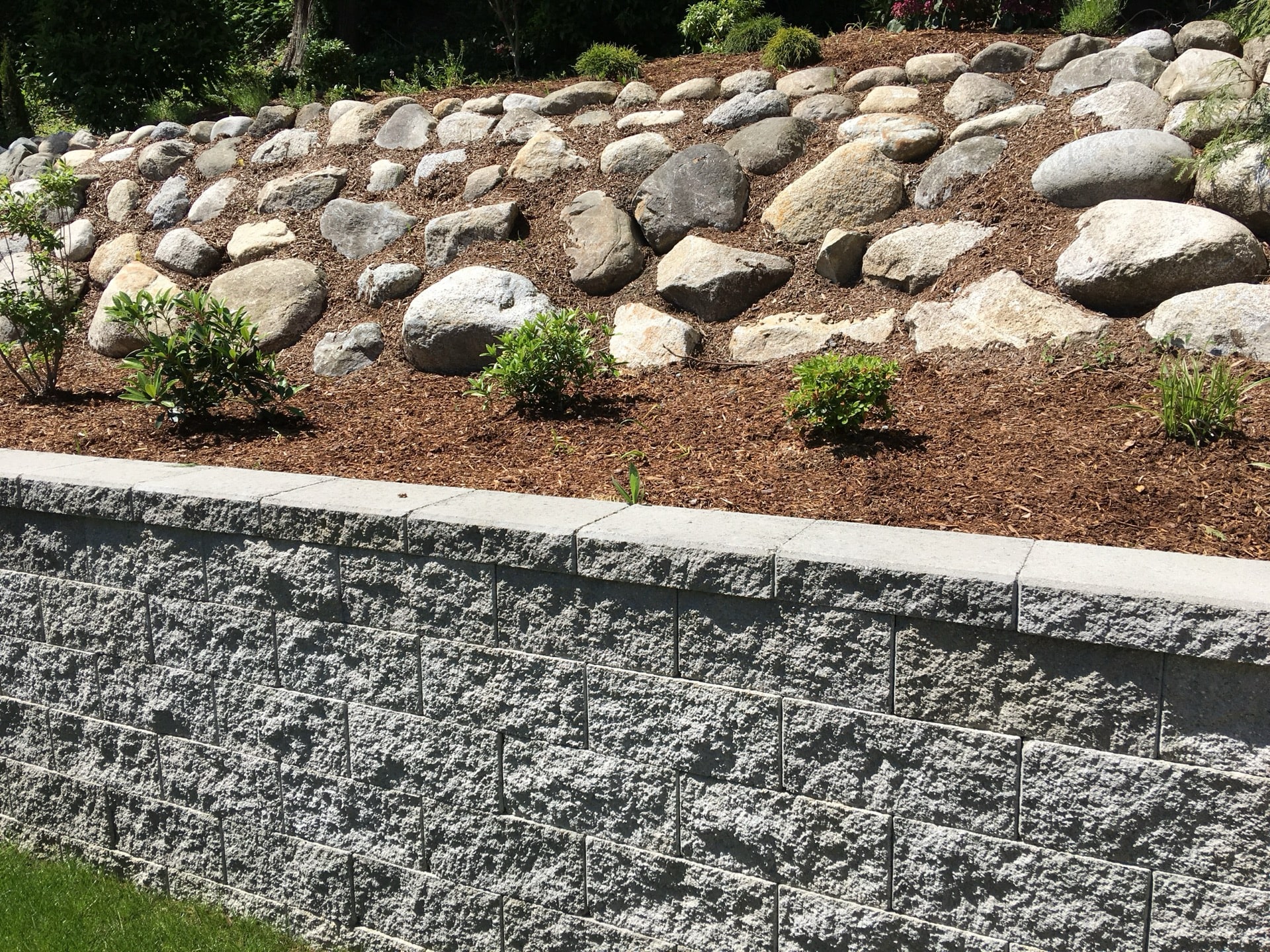 Does your land have a large slope or a significant height difference somewhere on your property? If you would rather walk down stable stairs instead of a slippery decline let us install a retaining wall for you. With retaining walls we can give you more level, usable land. We can terrace your property so that you have more space for lower beds, grass or maybe a patio. We can build retaining walls from wooden landscape ties, allan block concrete stones, or a natural rock such as granite. Your retaining wall could be as small as a foot high or as large as you can imagine.