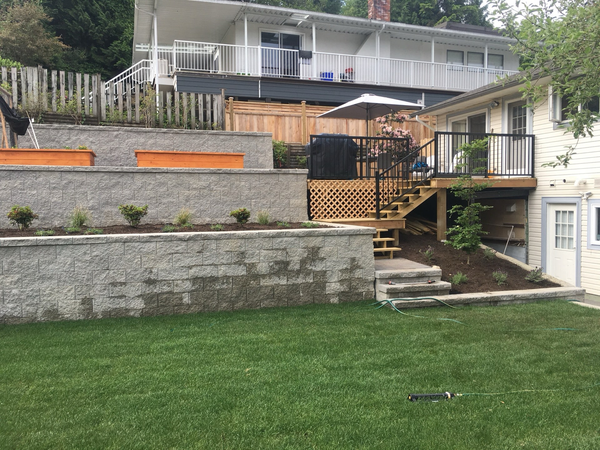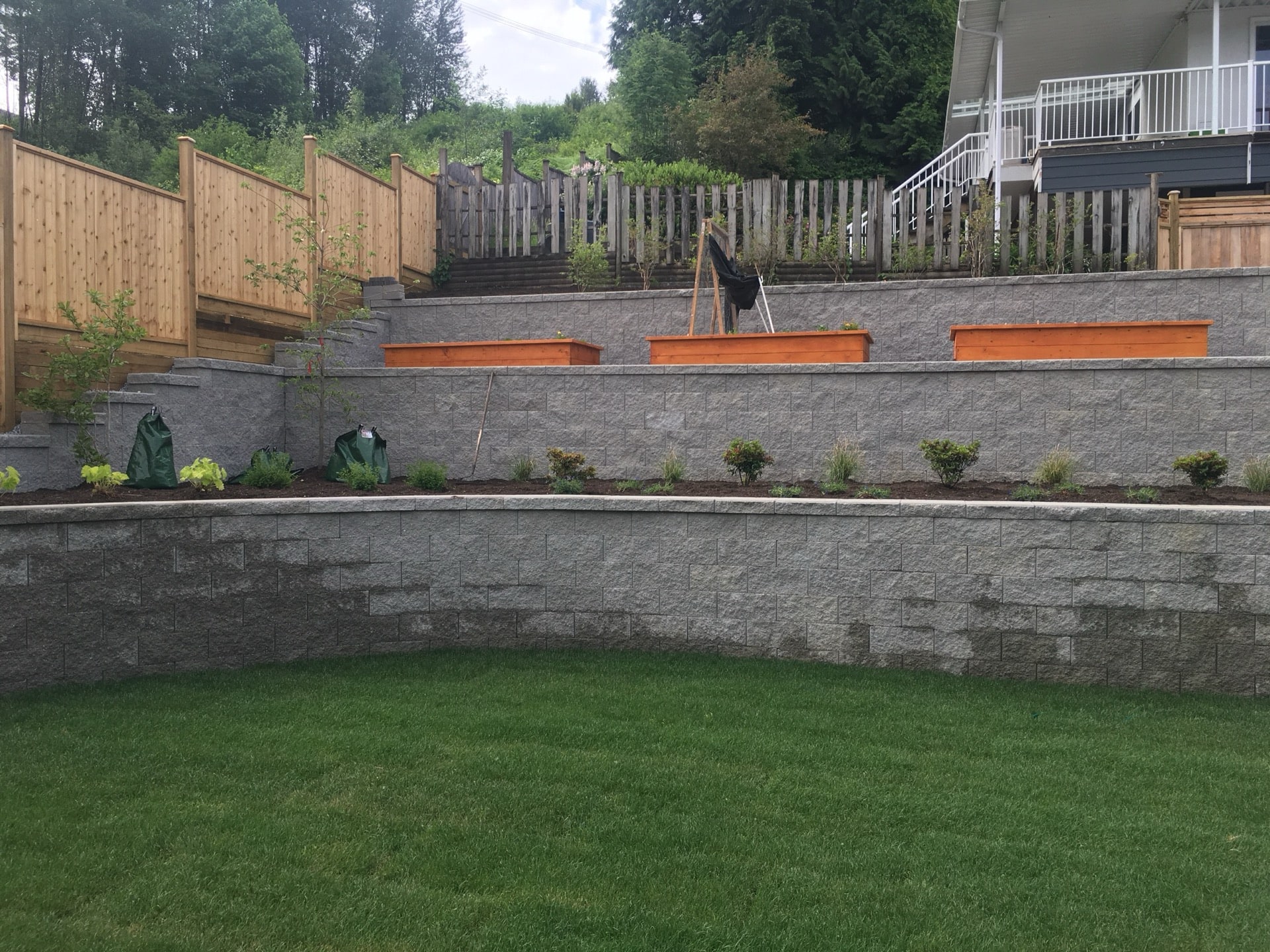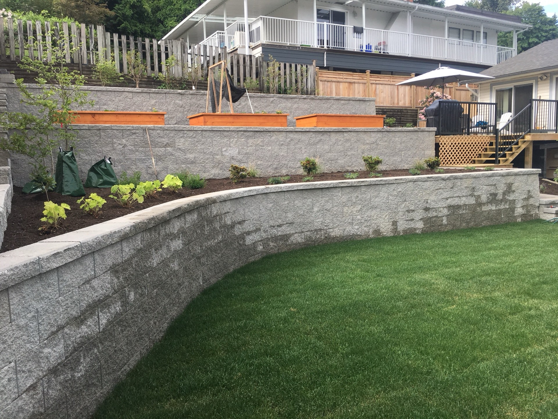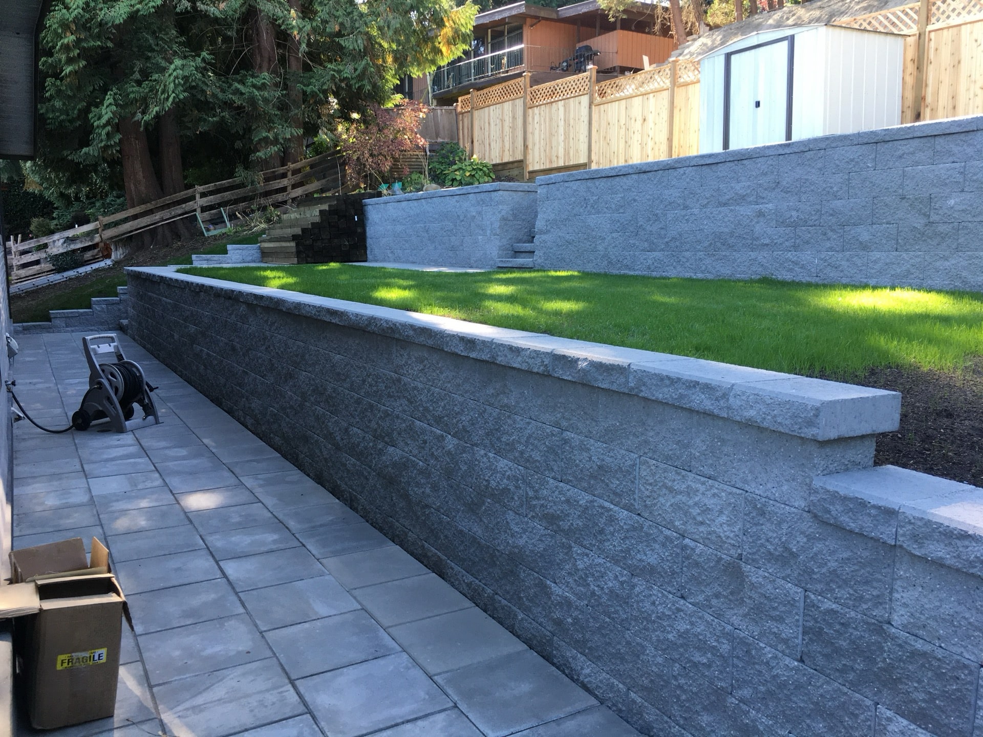 All walls over 4 feet in height must be built in compliance with municipal engineers, which can be costly, so whenever possible we can design your walls to remain under this 4 foot height restriction to help you save money. We build all walls to industry specifications that include adequate drainage behind the wall which will prevent it from being pushed out by the forces of nature.