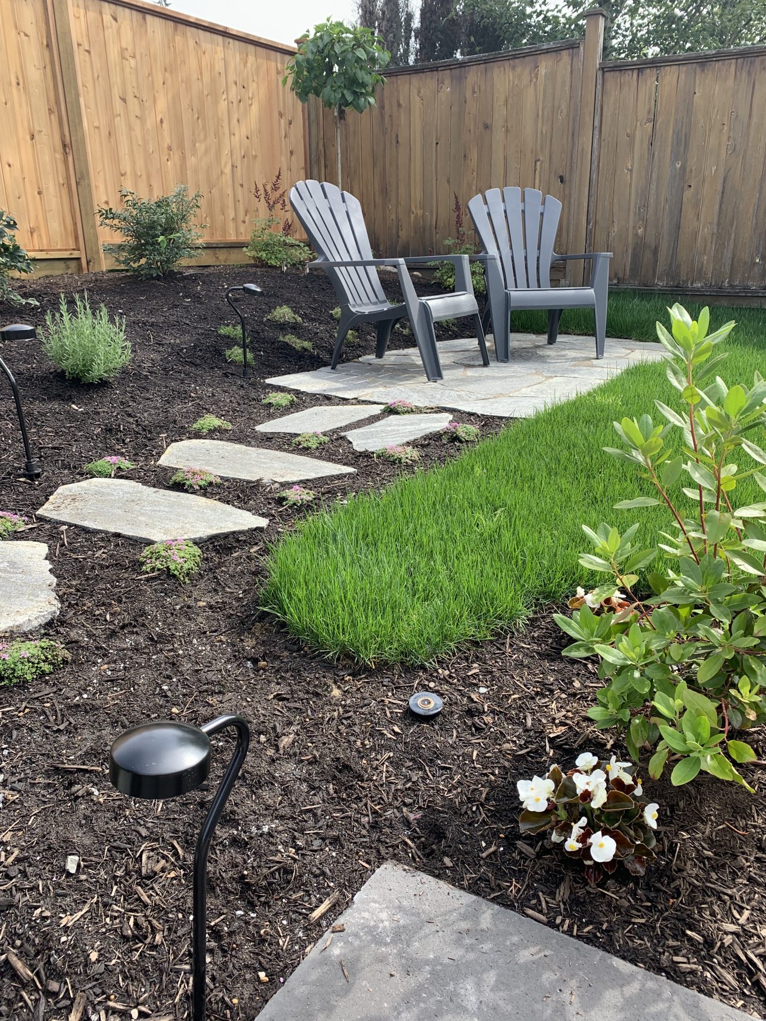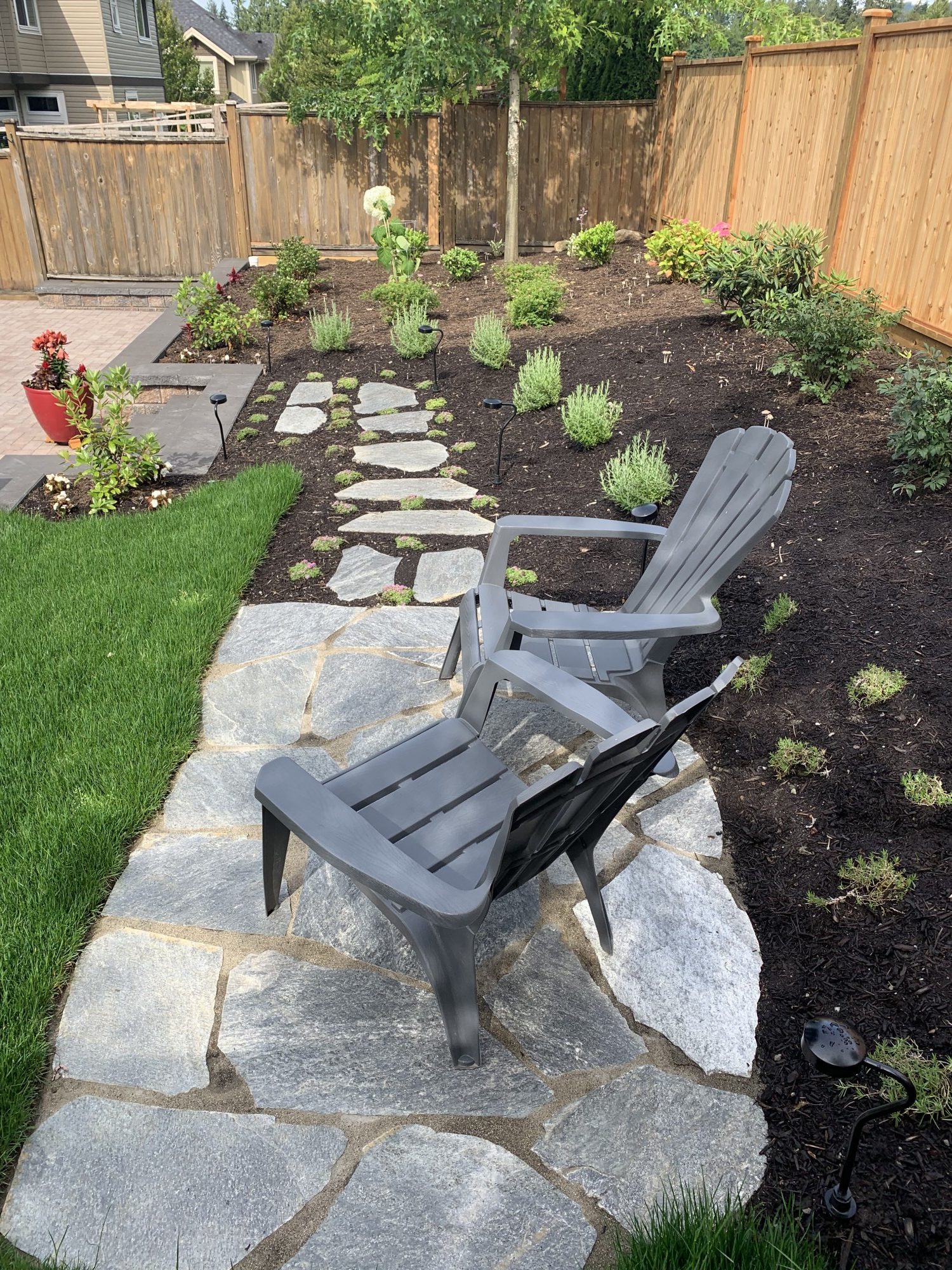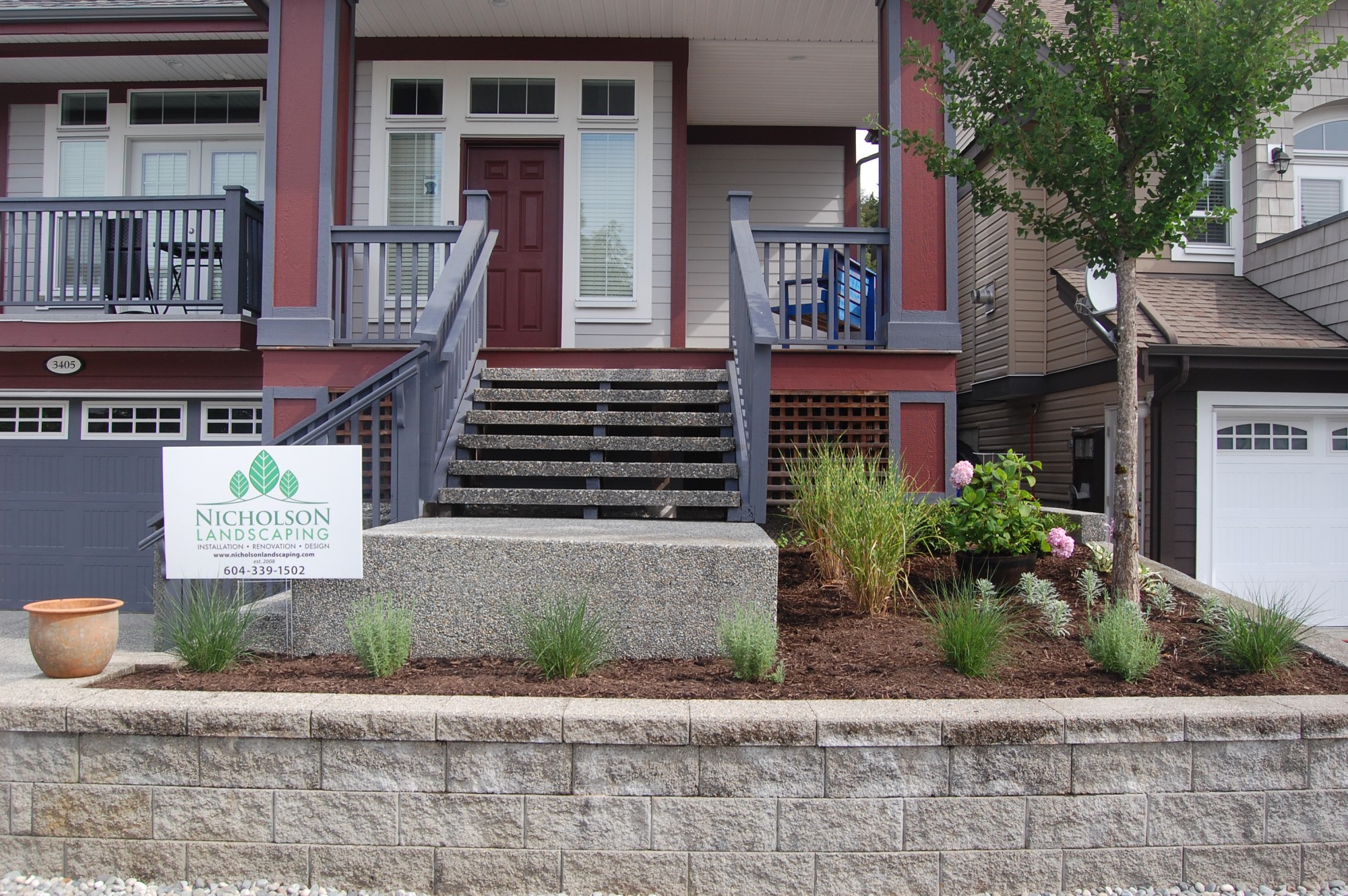 A wonderful couple moved into a older home in Anmore that needed a landscape renovation. This project started with a design done by us Nicholson Landscaping. The wife is very knowledgeable with plants and gardening and immediately loved our design, which included many flowering plants in a rock area with a stepping stone pathway.