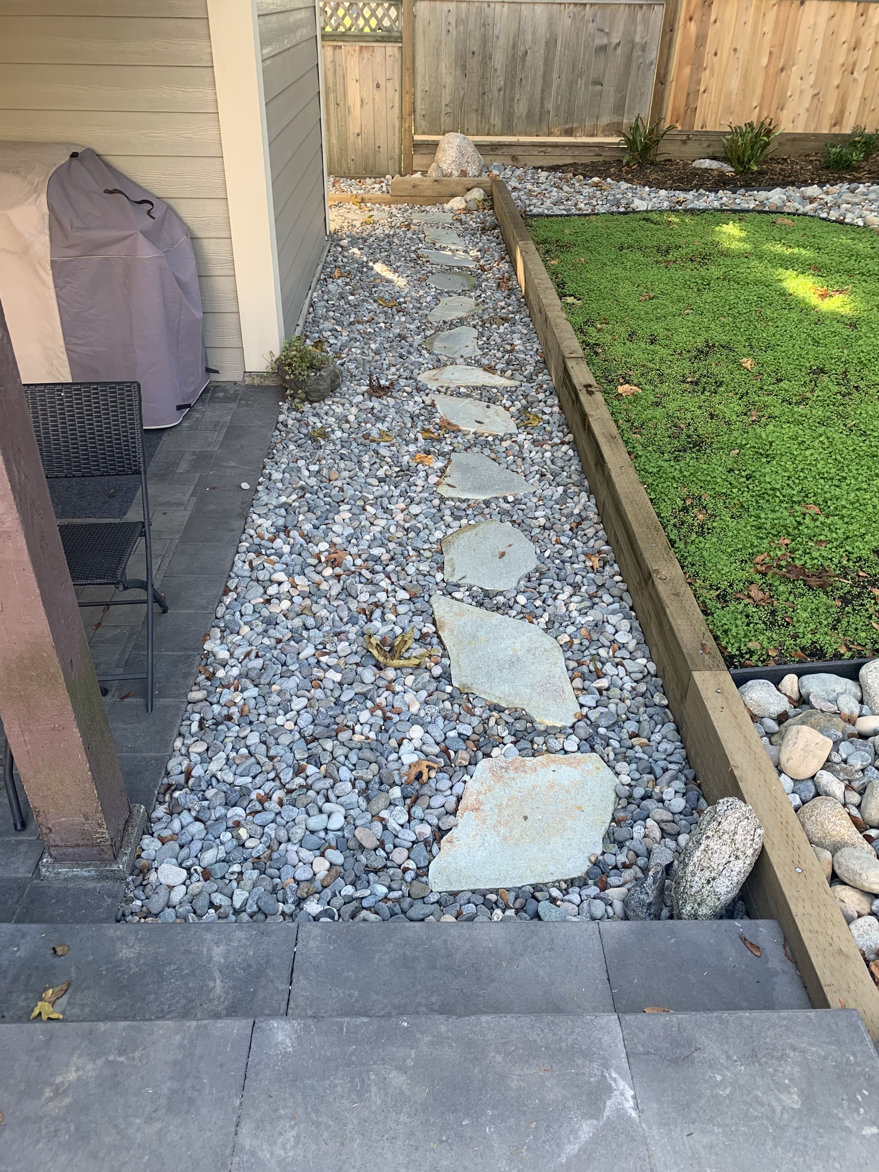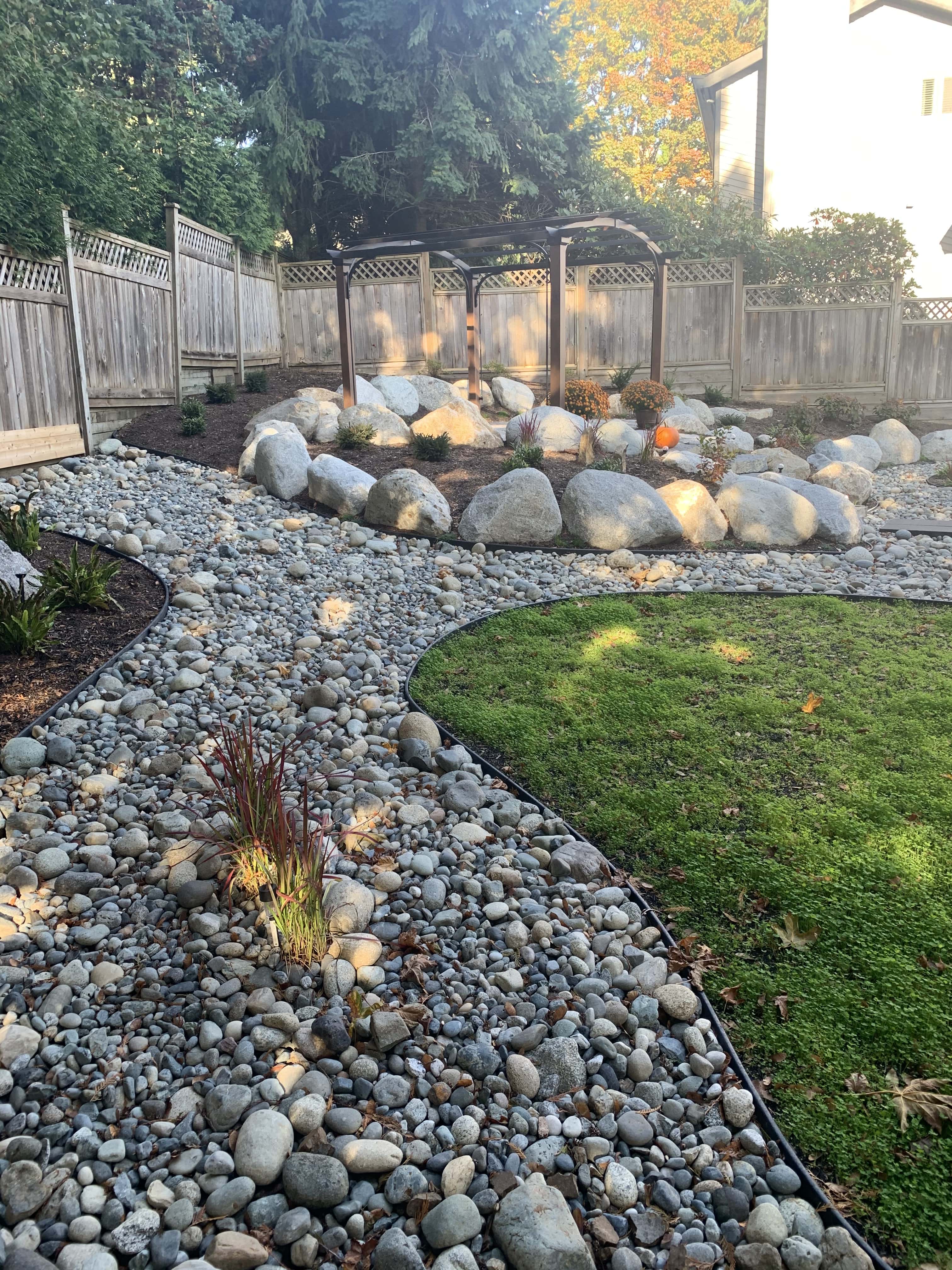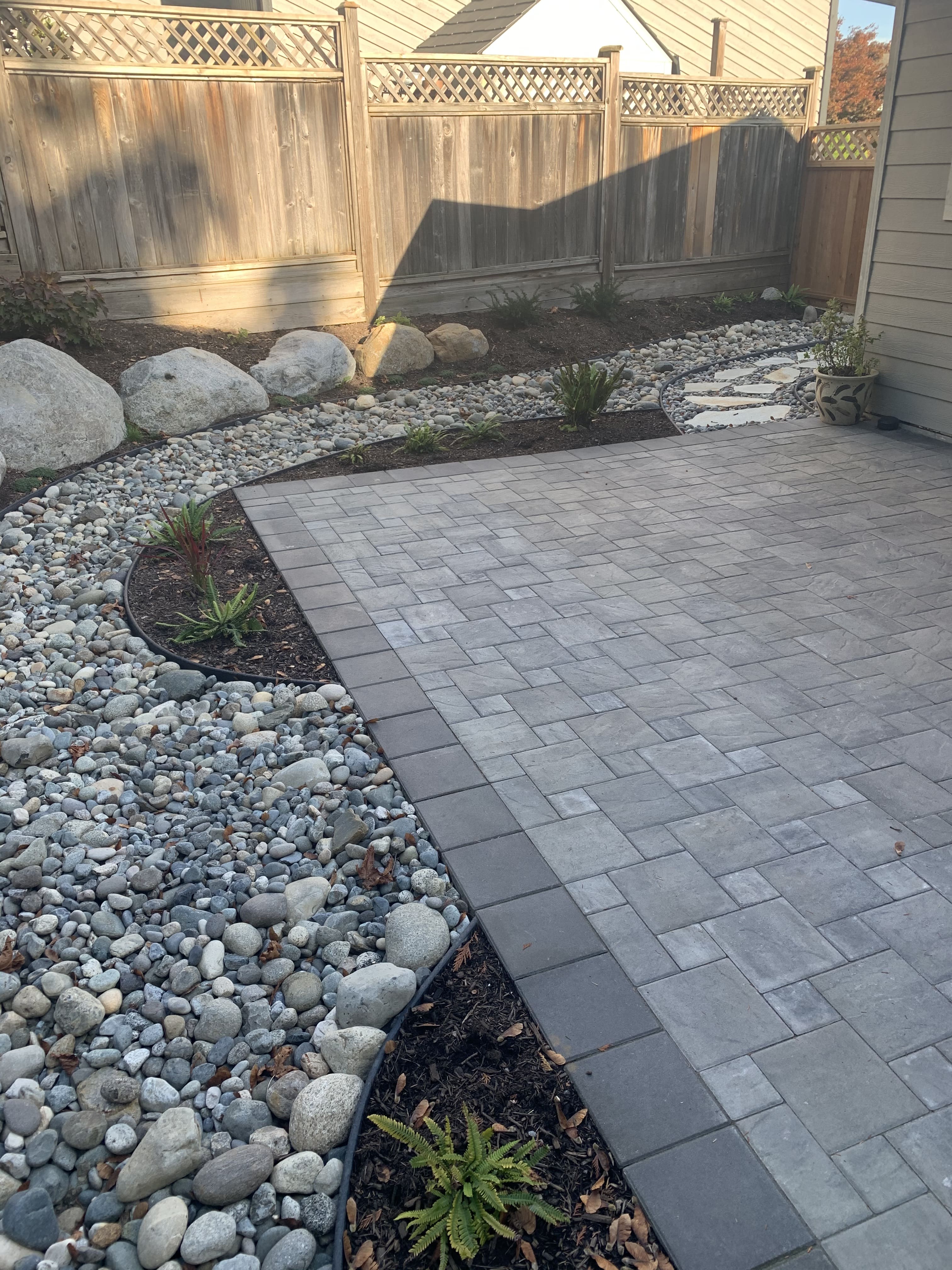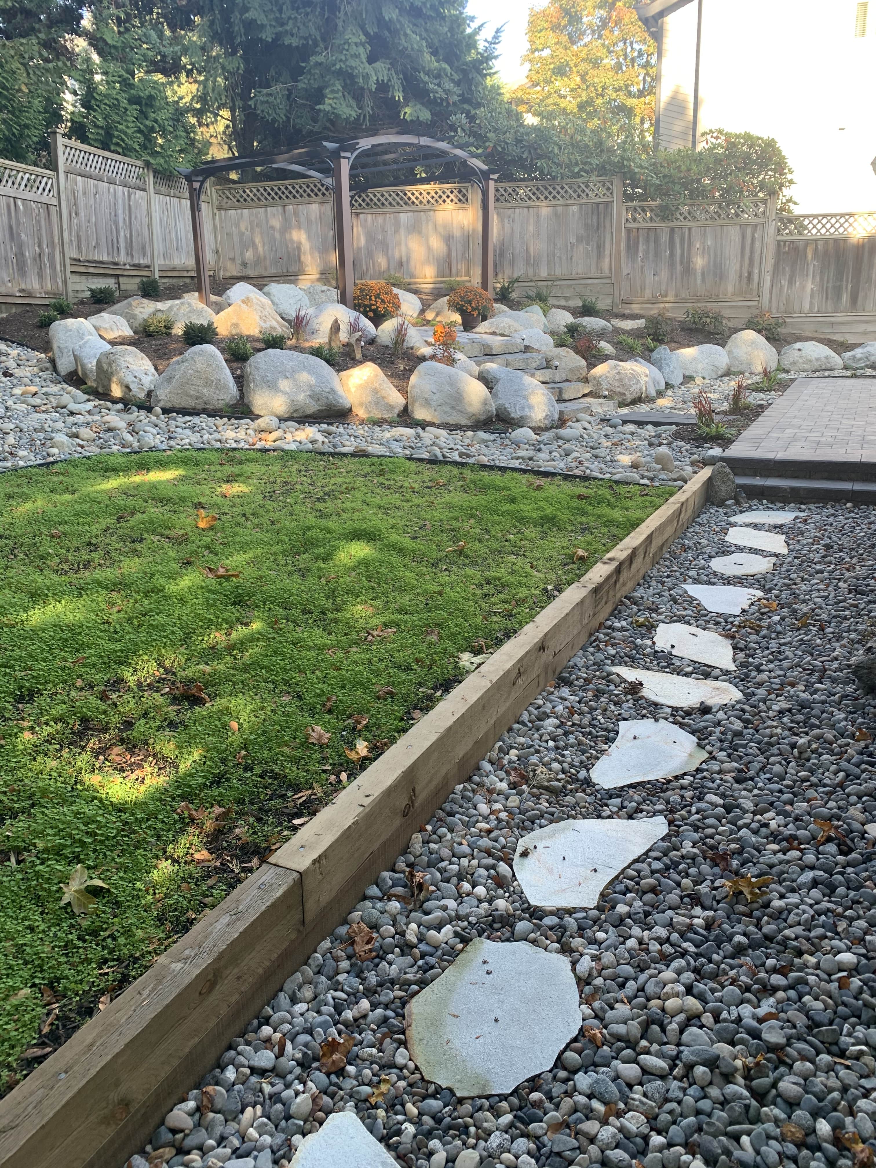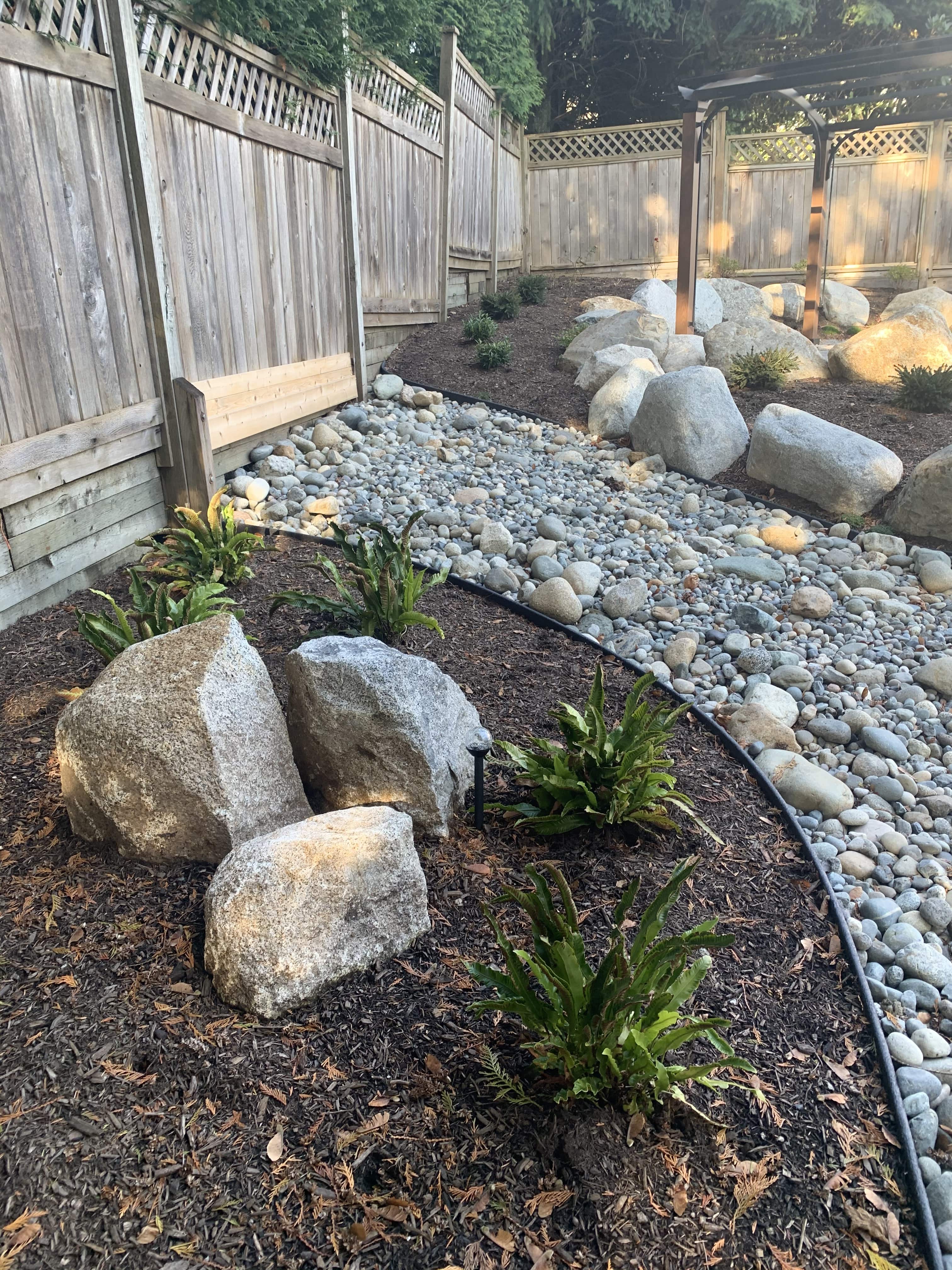 Our largest project ever! Almost every component of landscaping was installed around this small one story home on the hillside in south Coquitlam.