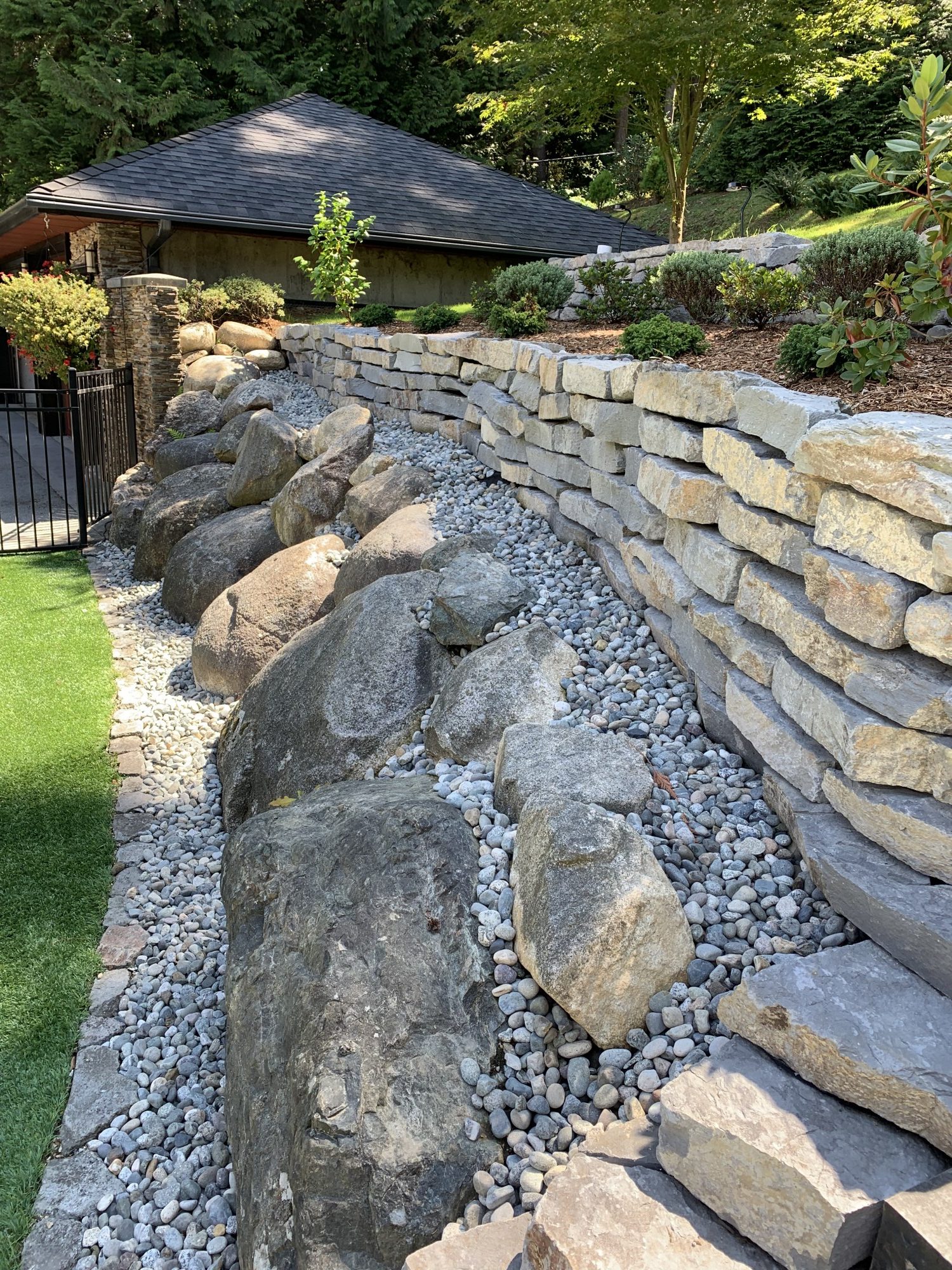 The homeowners contacted us to renovate their landscape, which included eliminating all high maintenance plantings and grass. They are bordered by a green belt next to a creek and wanted a mixture of outdoor living space and a natural look to compliment the green belt